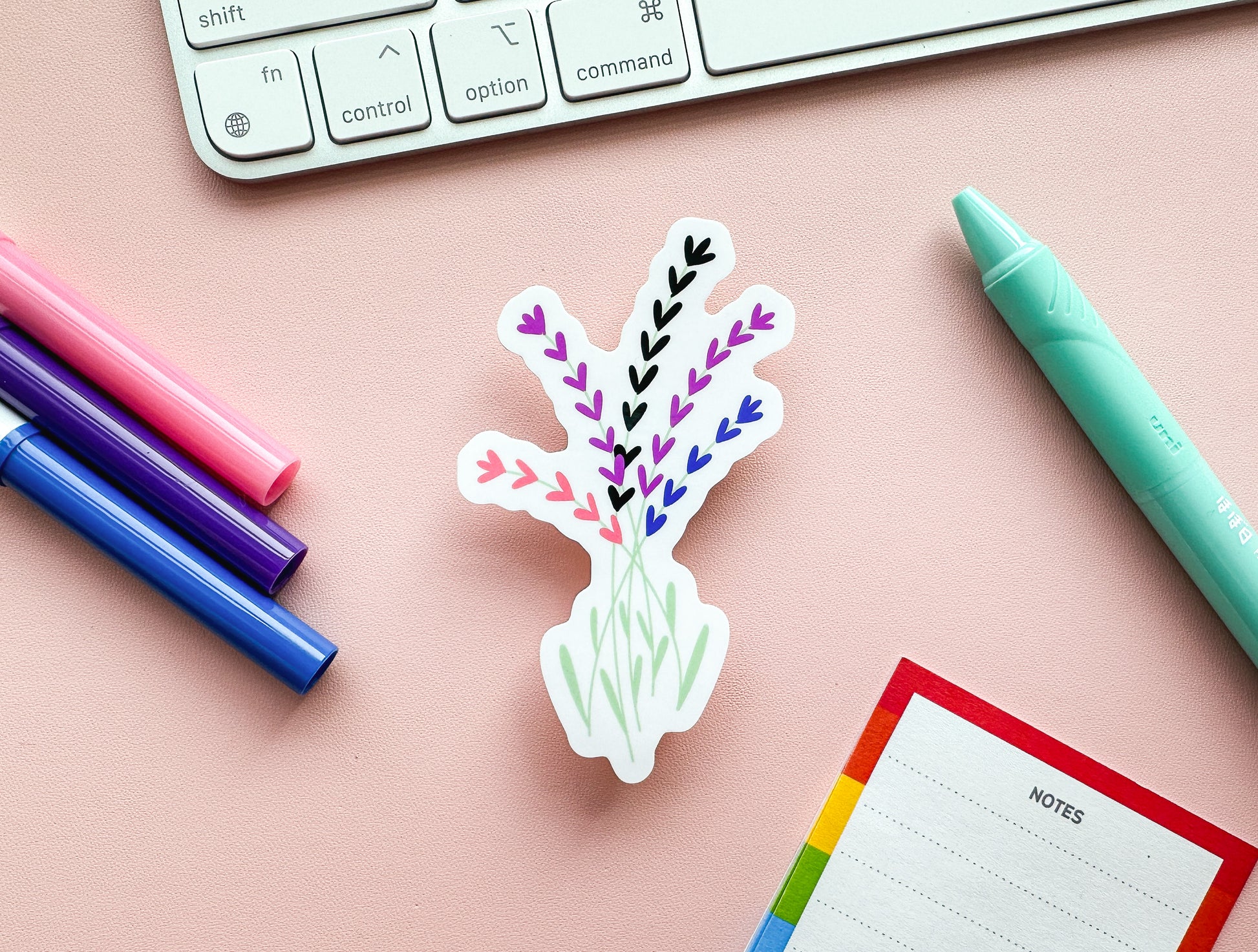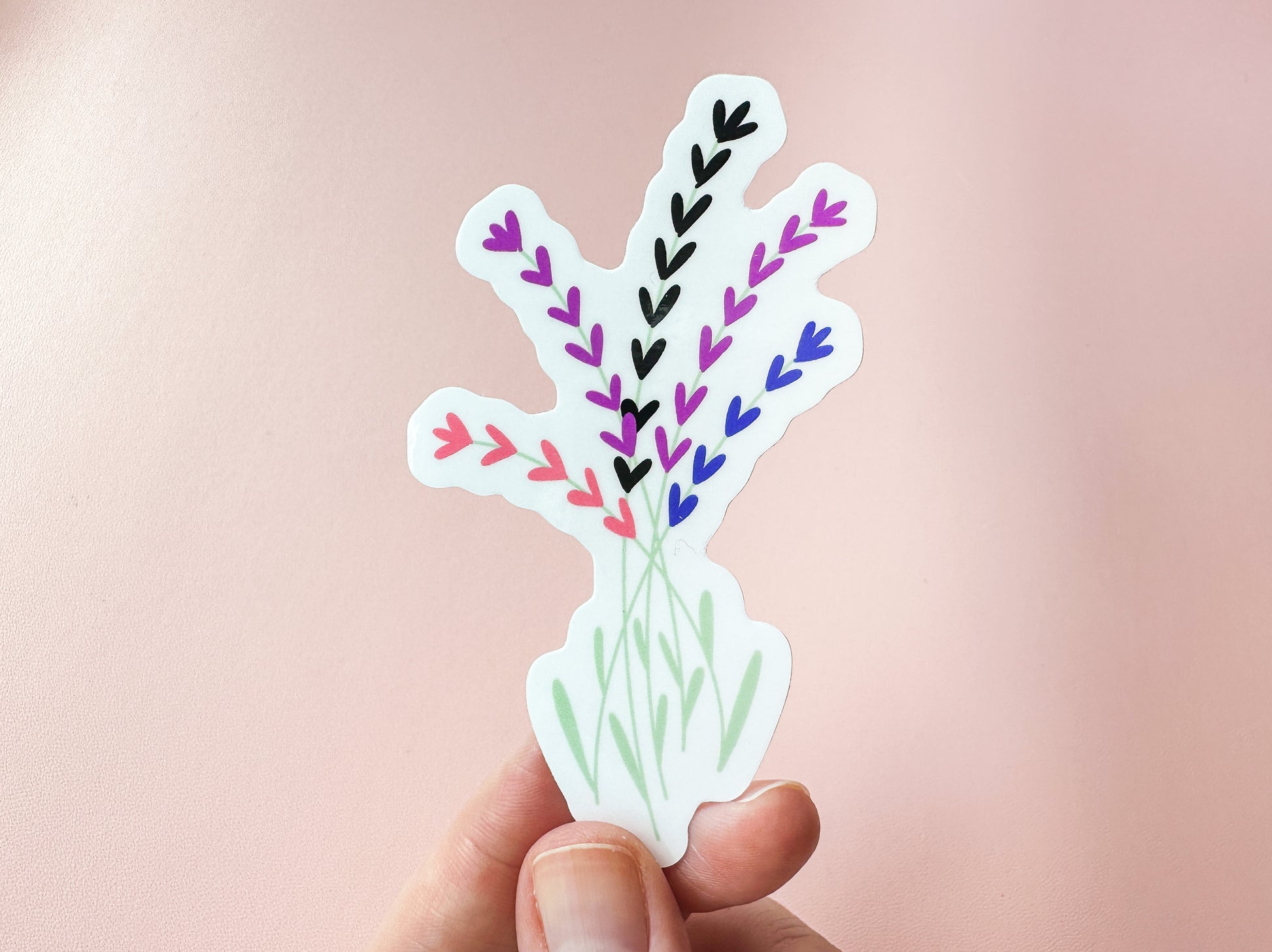 A lovely little die-cut bunch of genderfluid pride flags/flowers! Perfect for all your subtle gender fluid pride sticker needs. I don't really know what those might be, but it sounds like a good time.