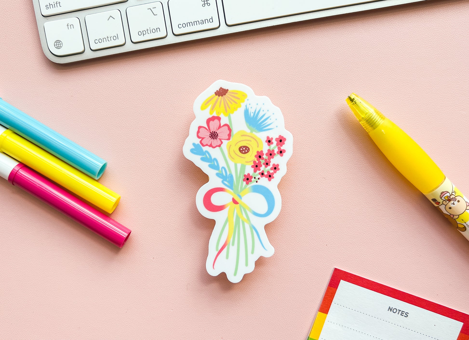 A lovely little die-cut bouquet of pan pride flags/flowers! Perfect for all your subtle pansexual pride sticker needs. I don't really know what those might be, but it sounds like a good time.